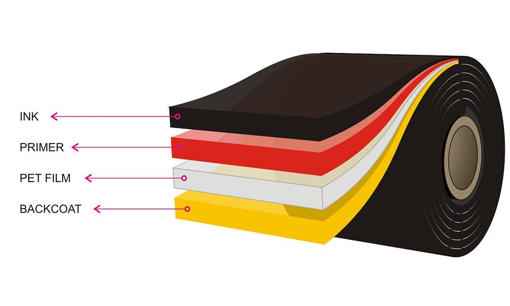 – Ink layer: Used on one side of the base ribbon. If the ink sticks from the outside, the Ink Roll is called Face out, and if the ink sticks from the inside, it is called Face in. Depending on the type of barcode printer, the appropriate type of ribbon ink will be the inner or outer ribbon. The ink side in contact with the printer (thermal printer)