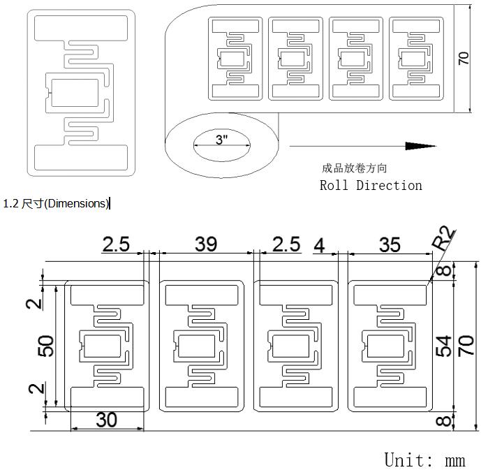 Nhãn giấy RFID này tuân theo tiêu chuẩn EPC C1G2 (ISO18000-6C), tần số hoạt động là 860 ~ 960MHz (Nó có thể được sử dụng trên toàn thế giới). Mỗi nhãn có một ID duy nhất và lưu trữ dữ liệu người dùng.
