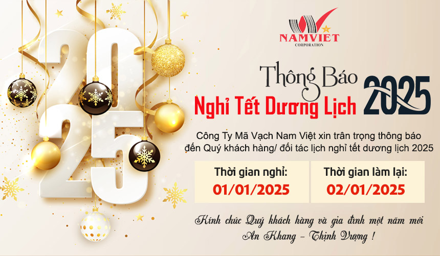 CÔNG TY CP SX TM DV MÃ VẠCH NAM VIỆT Chân thành cảm ơn sự hợp tác của Quý khách hàng, đối tác trong thời gian vừa qua. Công ty trân trọng thông báo đến Quý khách hàng, đối tác thời gian nghỉ Tết Dương Lịch 2025 như sau: Thời gian nghỉ : Thứ tư, Ngày 01/01/2025. Thời gian làm việc trở lại : Thứ...
