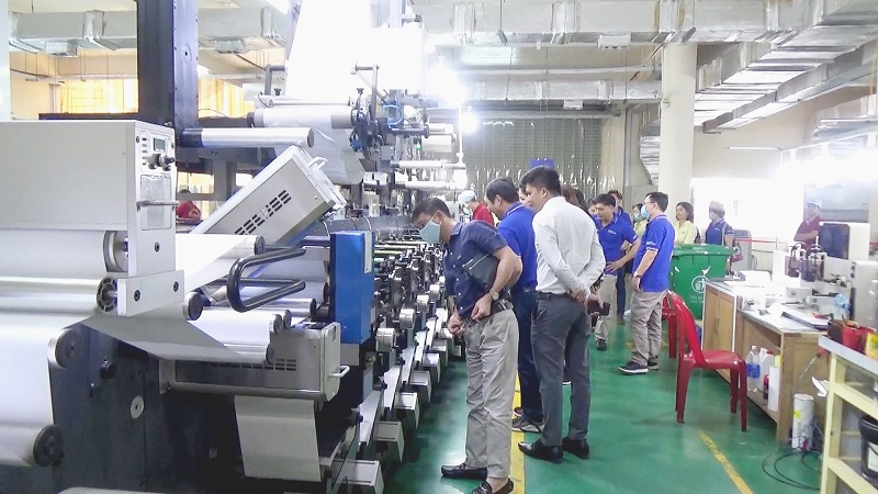 Đoàn học viên tham quan thực tế hệ thống máy móc cơ sở vật chất kỹ thuật của Công ty cổ phần sản xuất thương mại dịch vụ mã vạch Nam Việt