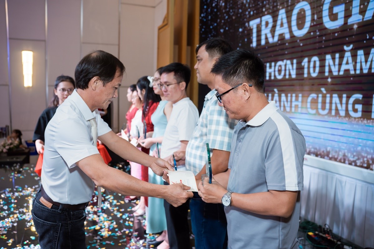 Chương trình dành thời gian trang trọng để tri ân và vinh danh các cán bộ, công nhân viên đã gắn bó trên 05 năm cùng Công ty, đồng thời ghi nhận những cá nhân có thành tích nổi bật trong năm 2025. Hoạt động này thể hiện sự trân trọng sâu sắc của Ban Lãnh đạo đối với những đóng góp bền bỉ, tinh thần trách nhiệm và sự đồng hành lâu dài của đội ngũ nhân sự trên hành trình phát triển của Công ty.